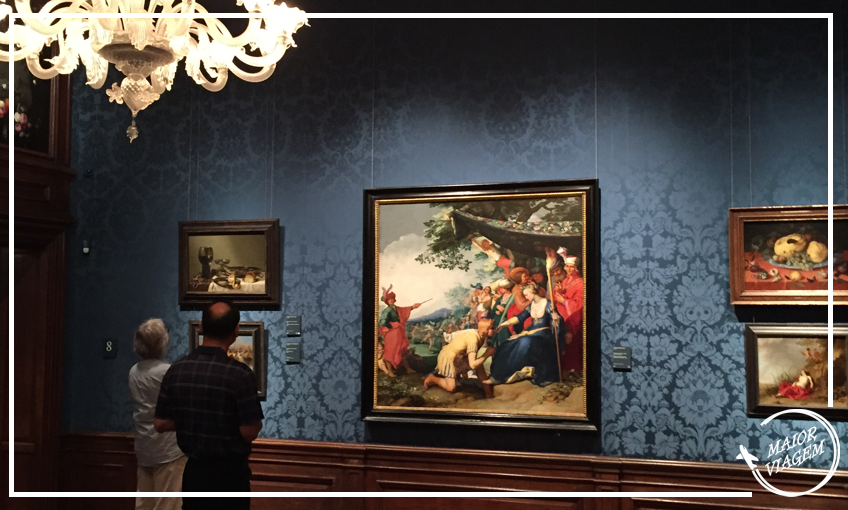 Uma das mais famosas telas holandesas, “Moça com Brinco de Peróla” de Johannes Vermeer, está no acervo local. Outros destaques são “Vista de Delft”, do mesmo artista, “O Touro” de Paulus Potter e “O Jardim do Éden de Jan Brueghel I e Peter Paul Rubens. Duas obras que chamaram muito a minha atenção foram “Mulher idosa e um menino”- Peter Paul Rubens – pela luminosidade do quadro e o detalhismo de “Aula de anatomia do Dr. Nicolaes Tulp” – Rembrant. Esse último artista tem ainda outras pinturas no local, incluindo um auto-retrato.