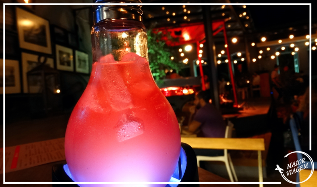 Iniciei a noite com o que promete ser o grande sucesso do novo menu: o Âmbar – Leblon Merlet, fumaça líquida, Campari e licor de cereja – é servido em uma lâmpada apoiada em uma base de Led. Apenas o começo de uma noite que iria me surpreender pelo visual e sabores das bebidas. Na sequência experimentei o Piña – Barcadi 8 anos, cítricos, Nocello e abacaxi desidratado – que é uma opção mais refrescante e doce, servido em uma louça em formato de abacaxi. Ainda pude conhecer o Gaya – El jimador, Saint Germain, Martini dry, rúcula, cítricos e açúcar de tomilho – e o Eiffel – Vodka Finlândia infusionada com pêra, pétala de rosa, ameixa seca, água de flor de laranjeiras e grapefruit. Dois drinks que encerraram a noite no Bar Sobe com maestria.