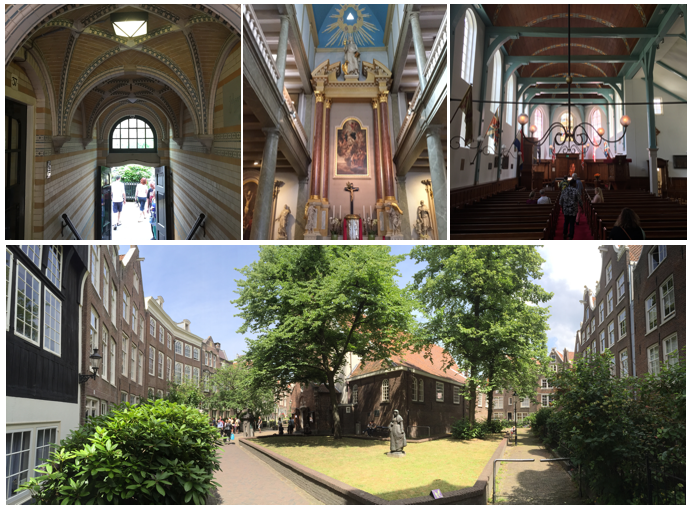 Além do lindo jardim do pátio interno e das casas em estilo típico holandês, incluindo uma com faixada original de madeira (a de número 34), é possível conhecer uma pequena igreja bem ao centro do jardim e uma capela escondida, usada durante a perseguição aos católicos.