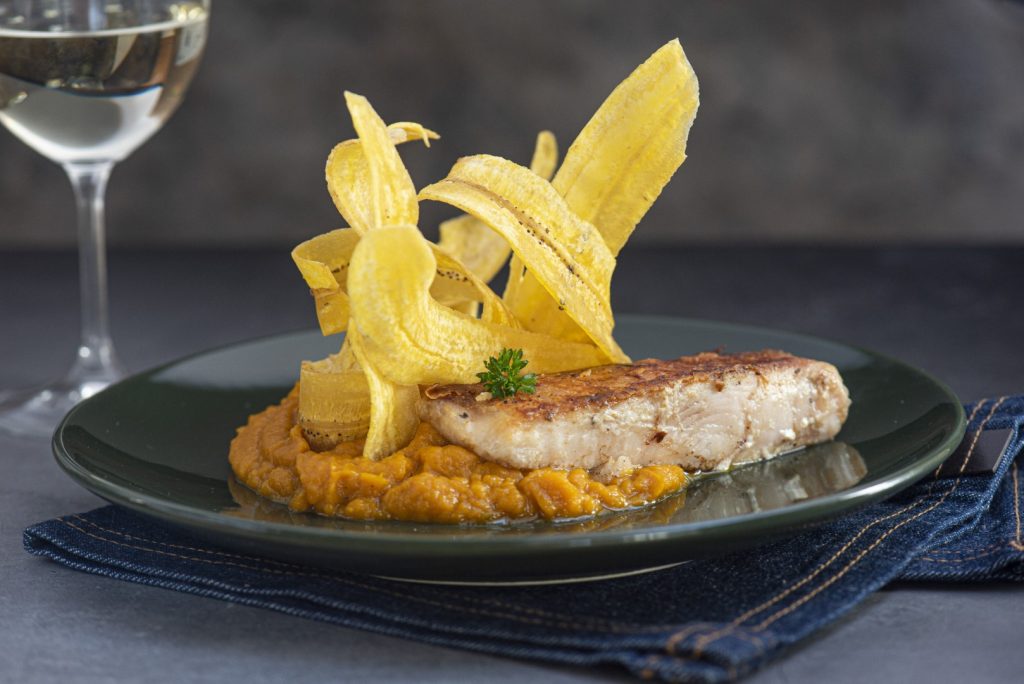 A Le Blé Casa de Pães, em São Paulo, é uma padaria inspirada nas boulangeries francesas que prepara deliciosos pães artesanais e viennoiseries, conhecidos por aqui como folhados, serve também um cardápio de bistrô para a hora do almoço. Para o Dia da Banana, destaque para o prato principal: filé de pirarucu grelhado, acompanhado de purê de abóbora japonesa com limão-rosa e chips de banana da terra (R$ 45).
