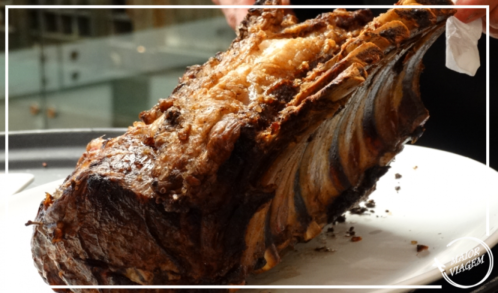 Como as carnes são o grande destaque, apesar dos pescados parecerem apetitosos também, de prato principal experimentei os dois novos cortes da casa: o macio e saboroso T-bone de Kobe, corte especial de gado de raça 100% wagyu, e o espetacular Prime Rib English Cut, tradicional corte inglês de prime rib e black angus assado inteiro. Ambos acompanhados de uma farofa de banana daquelas bem caseiras, o surpreendente arroz de limão siciliano e batata giuseppe. Tudo isso acompanhado de um bom vinho tinto da excelente adega que conta com quase 600 rótulos.