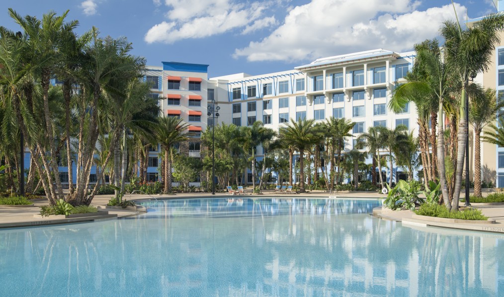 De dentro do táxi aquático, tirar foto das cascatas estonteantes na lagoa do hotel, que ficam acesas à noite, dando as boas-vindas aos visitantes em uma ilha paradisíaca. Um toboágua leva para a maior piscina do complexo que tem ainda área de lazer para crianças, duas praias com areia e fogueira. Além disso os hóspedes podem aproveitar a entrada antecipada nos dois parques da Universal Orlando, uma hora antes da abertura.