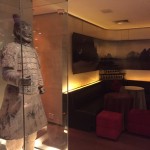 Fizemos reserva para 5 pessoas e ao entrar fomos “recebidos” por estátuas de guerreiros de terracota de Xian. O salão é amplo e uma coisa que me chamou a atenção foram as mesas redondas que além de facilitar a conversa entre os clientes, também dispõem de uma bandeja giratória em seu centro, facilitando assim que as pessoas se sirvam. Ficamos no andar térreo, mas a casa ainda tem outros dois andares, sendo o 3º piso um terraço com teto de vidro e ótima vista. Próxima vez, quero ficar lá.