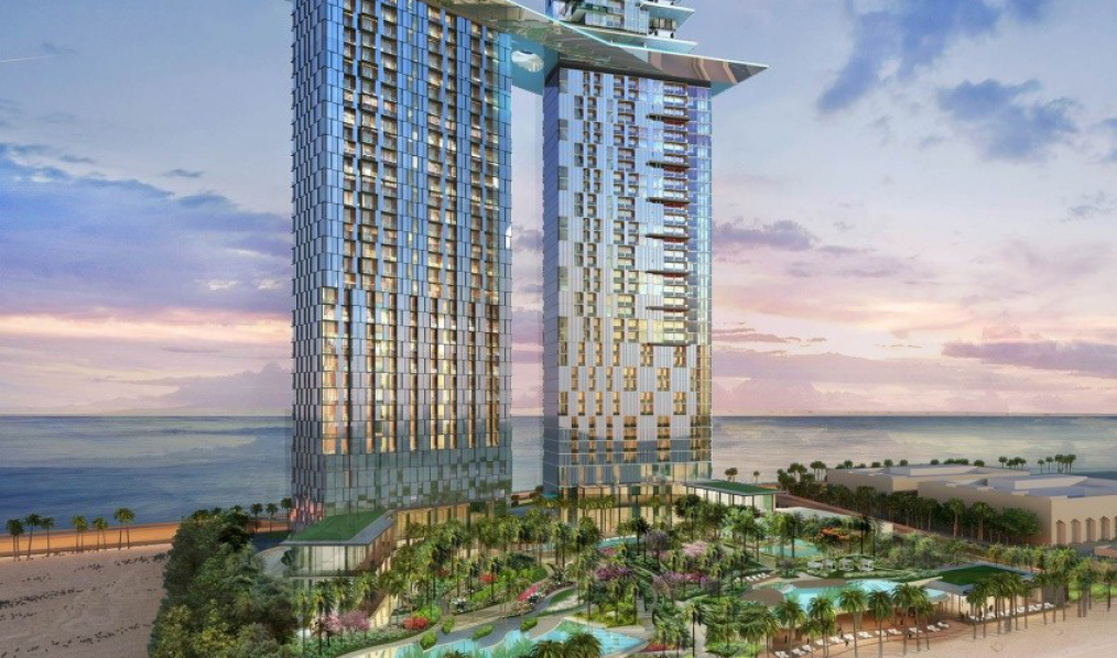 Programado para ser inaugurado em 2021, será o primeiro resort de praia da marca Raffles em Dubai e será a estrutura mais alta da ilha Palm Jumeirah. Com quase 260 metros de altura, o complexo irá oferecer vistas da ilha sem qualquer obstáculo, assim como da espetacular costa do Golfo Árabe e do horizonte de Dubai. O grande destaque será uma piscina aérea de 155 metros de comprimento conectando as torres a 170 metros de altura, da qual os hóspedes poderão apreciar as paisagens livres a partir de um ponto de vista único.
