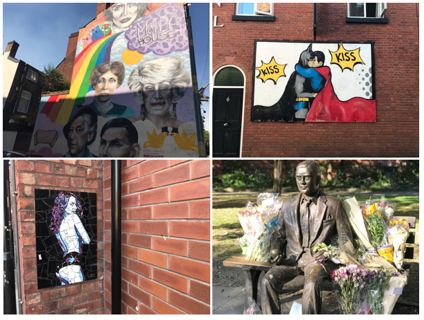 (3) Mural dos Ícones de Manchester Gay – Grandes ícones da comunidade gay local estão imortalizados em um mural enorme na parede da Molly House, na Richmons Street. O prédio inteiro teve sua fachada lateral pintada em homenagem a esses personagens de Manchester.