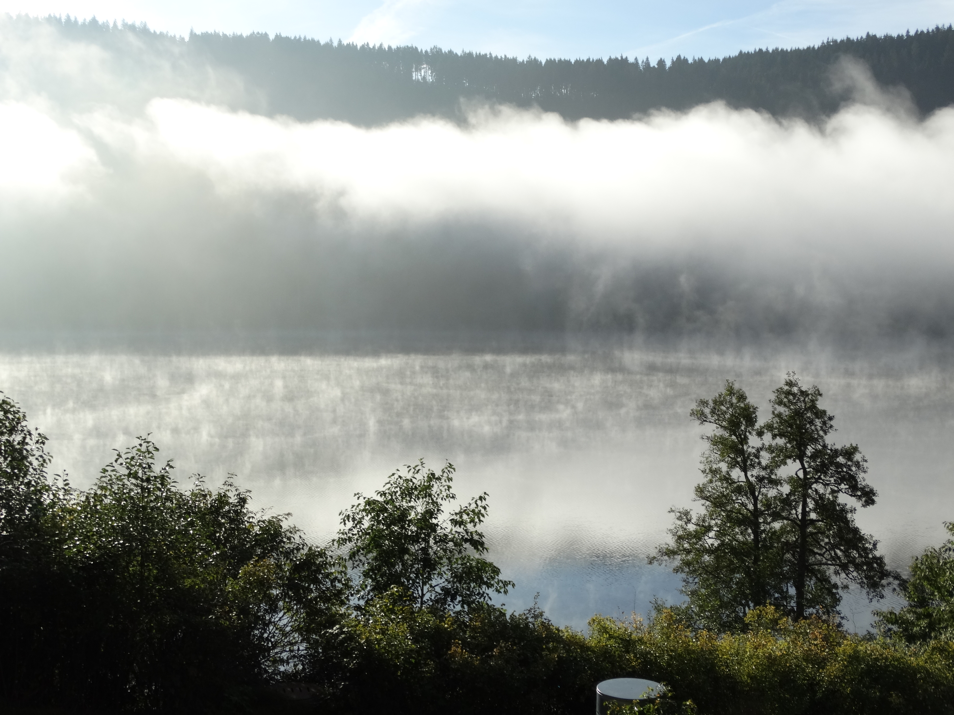 A cidade é muito pequena, com um centrinho reduzido facilmente visitado a pé. Nele é possível encontrar lojinhas com artesanato local – destaque para os relógios cuco famosos da região – e restaurantes onde experimentei uma boa culinária típica, incluindo na sobremesa a famosa torta de chocolate, chantili e cereja. De lá é possível também alugar um barco a remo e dar uma volta pelo lago (fui logo cedo e a iluminação do sol batendo no lago, junto com a névoa por conta do frio, renderam ótimas fotos).