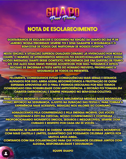 O que era pra ser uma celebração da chegada de 2025 acabou virando uma dor de cabeça para organizadores e insatisfação do público. Entenda o que aconteceu na Festa Guapo que aconteceu no dia 01º de janeiro.