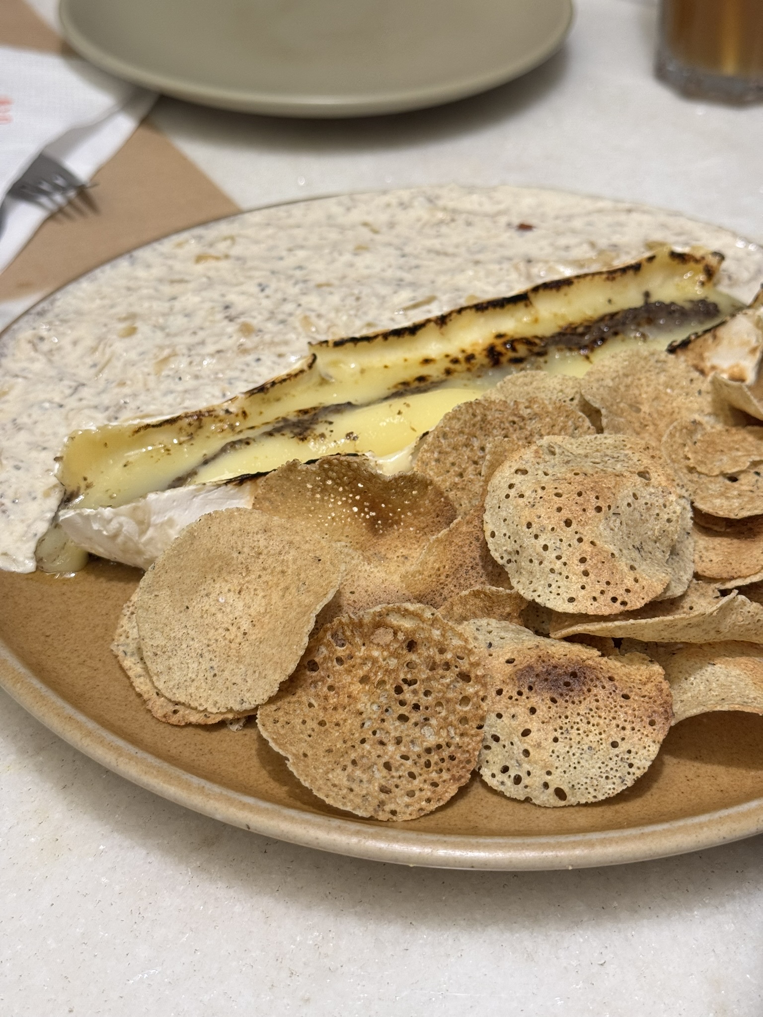 Uma das entradas mais pedidas é a Saint Michel – um delicioso brie quente recheado com trufas negras, creme de cebola trufada e torradinhas de sarraceno Crédito: Maior Viagem/Amanda Santiago