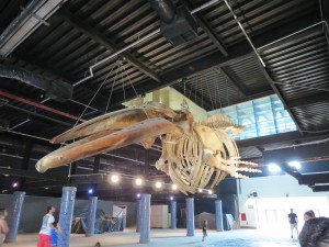 Logo na entrada o visitante poderá ver de perto o esqueleto de uma baleia. A baleia foi encontrada morta e encalhada na Praia da Macumba e seu esqueleto sofreu uma osteomontagem até ser exposto no hall de entrada do AquaRio. O prédio é formado por um prédio antigo, datado de 1914, cuja estrutura metálica foi mantida e outros dois prédios novos, todos com pé direito duplo.