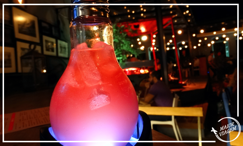Iniciei a noite com o que promete ser o grande sucesso do novo menu: o Âmbar – Leblon Merlet, fumaça líquida, Campari e licor de cereja – é servido em uma lâmpada apoiada em uma base de Led. Apenas o começo de uma noite que iria me surpreender pelo visual e sabores das bebidas. Na sequência experimentei o Piña – Barcadi 8 anos, cítricos, Nocello e abacaxi desidratado – que é uma opção mais refrescante e doce, servido em uma louça em formato de abacaxi. Ainda pude conhecer o Gaya – El jimador, Saint Germain, Martini dry, rúcula, cítricos e açúcar de tomilho – e o Eiffel – Vodka Finlândia infusionada com pêra, pétala de rosa, ameixa seca, água de flor de laranjeiras e grapefruit. Dois drinks que encerraram a noite no Bar Sobe com maestria.