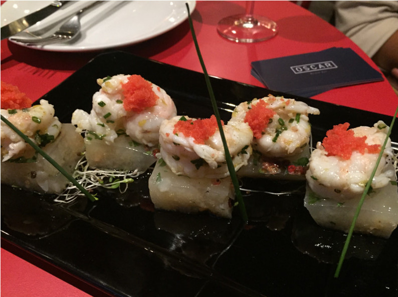 Trazendo um pouco da França para a rua Dias Ferreira, o Oscar Bistrô Bar dispõe de mesas em uma varanda bem intimista, que avança pela calçada. Para compartilhar, a sugestão é a Planche St. Germain Des Prés que serve um mix de frios e queijos, acompanhados de torradas. Trazendo um pouco de Portugal para o cardápio, a porção de bolinho de bacalhau com molho picante é servida com 6 unidades, mas a grande novidade do cardápio para o verão, é o refrescante Terrine de lichia e lagostim (foto).