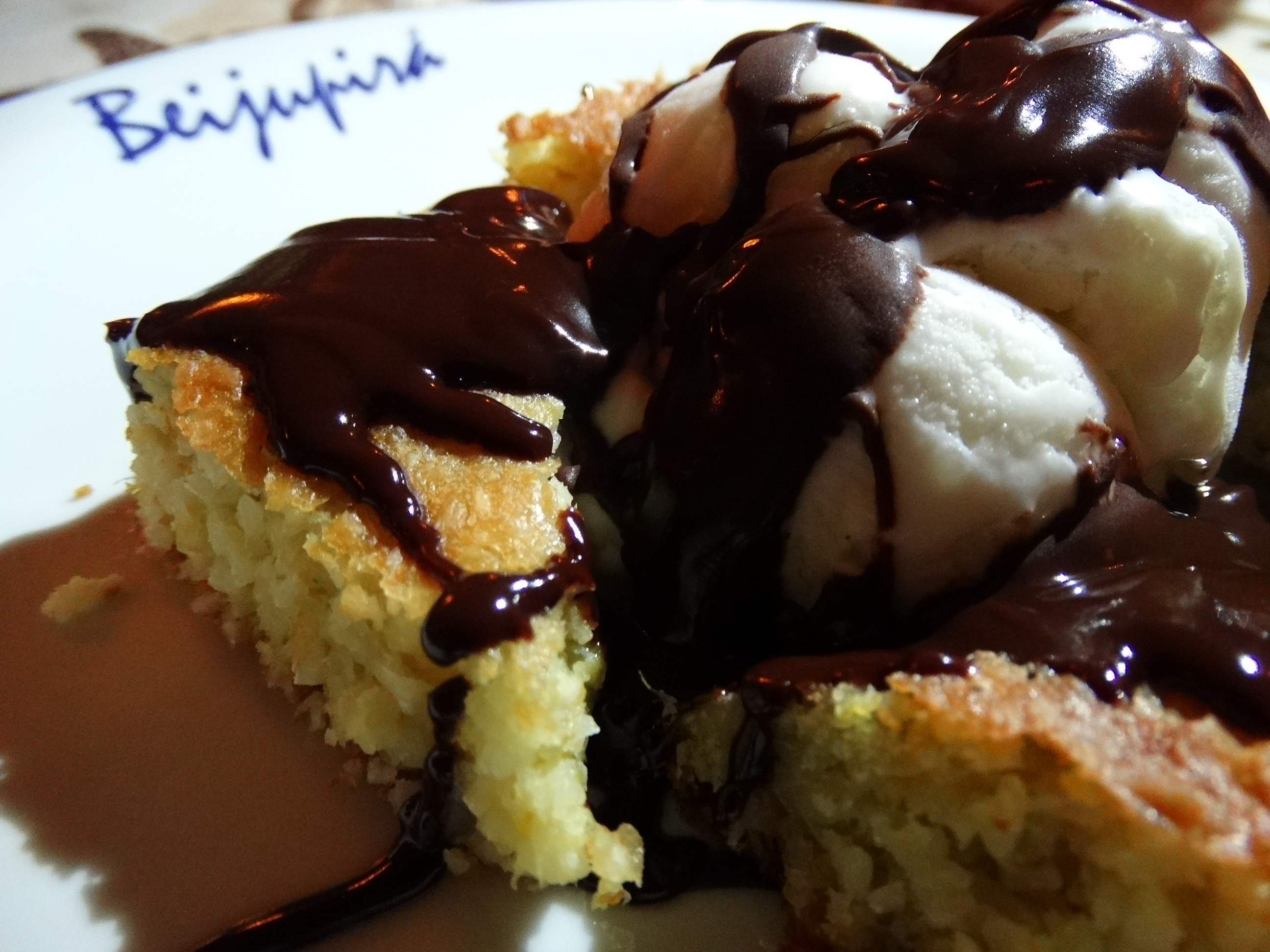 DSC06181Para finalizar recomendo o Beijubocado, delicioso bombicado de milho e coco com sorvete de café e calda de chocolate. Uma sobremesa com gostinho de casa da vovó que faz o jantar acabar de forma deliciosa. Há também opções clássicas como o cartola ou refrescantes como sorvete.