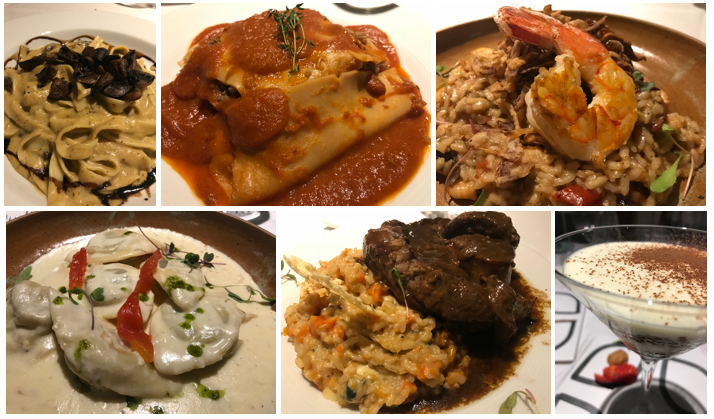 Para os pratos principais, em porções para uma pessoa bem servidos, existem diferentes opções também. Claro que o destaque ficam por conta de receitas italianas, com a maioria das massas feitas no próprio Bota Restaurante. Experimentamos na mesa a Lasagna que o chef Joca apresenta com ragu de carne e embutidos artesanais; o Tortelone recheado com rabada e fonduta de meia cura; e o Fettucine com cogumelos portobelo e paris em creme de berinjela defumada. Ainda experimentamos o Risotto Bota, apresentado pelo chef como um ristoso com estilo de paeja (com camarões, cogumelos, legumes grelhados, embutidos artesanais e cebola crocante) e o Ossobuco alla Maria Bonita (com risoto de abóbora, queijo azul e telha de coalho). Para finalizar uma nova mostra da ousadia do chef sobre clássicos da gastronomia italiana. O Tiramisù do Bota Restaurante é feito com genoise de fubá, café coado e paçoca da casa.