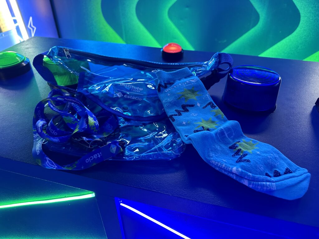 No espaço da faculdade o público será premiado com algumas dessas opções: cartucheira, corda pra celular, meia, ou ingresso pra área VIP.