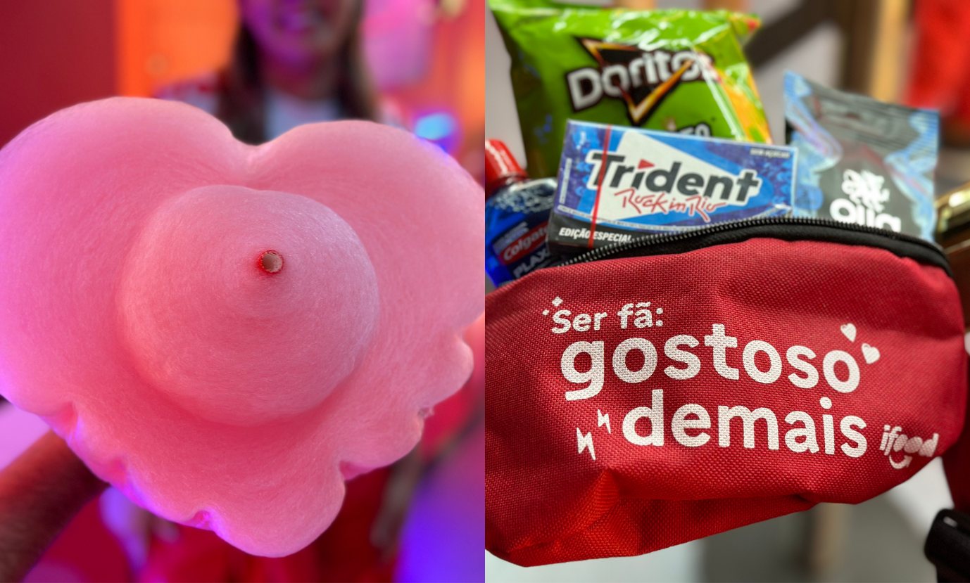 A marca está com dois espaços. No que fica embaixo do Vipão do Rock in Rio o prêmio na ativação é uma pochete cheia de produtos de outras marcas patrocinadoras do festival. Já no espaço que fica próximo ao chafariz do Rock in Rio os brindes são algodão doce e pin.