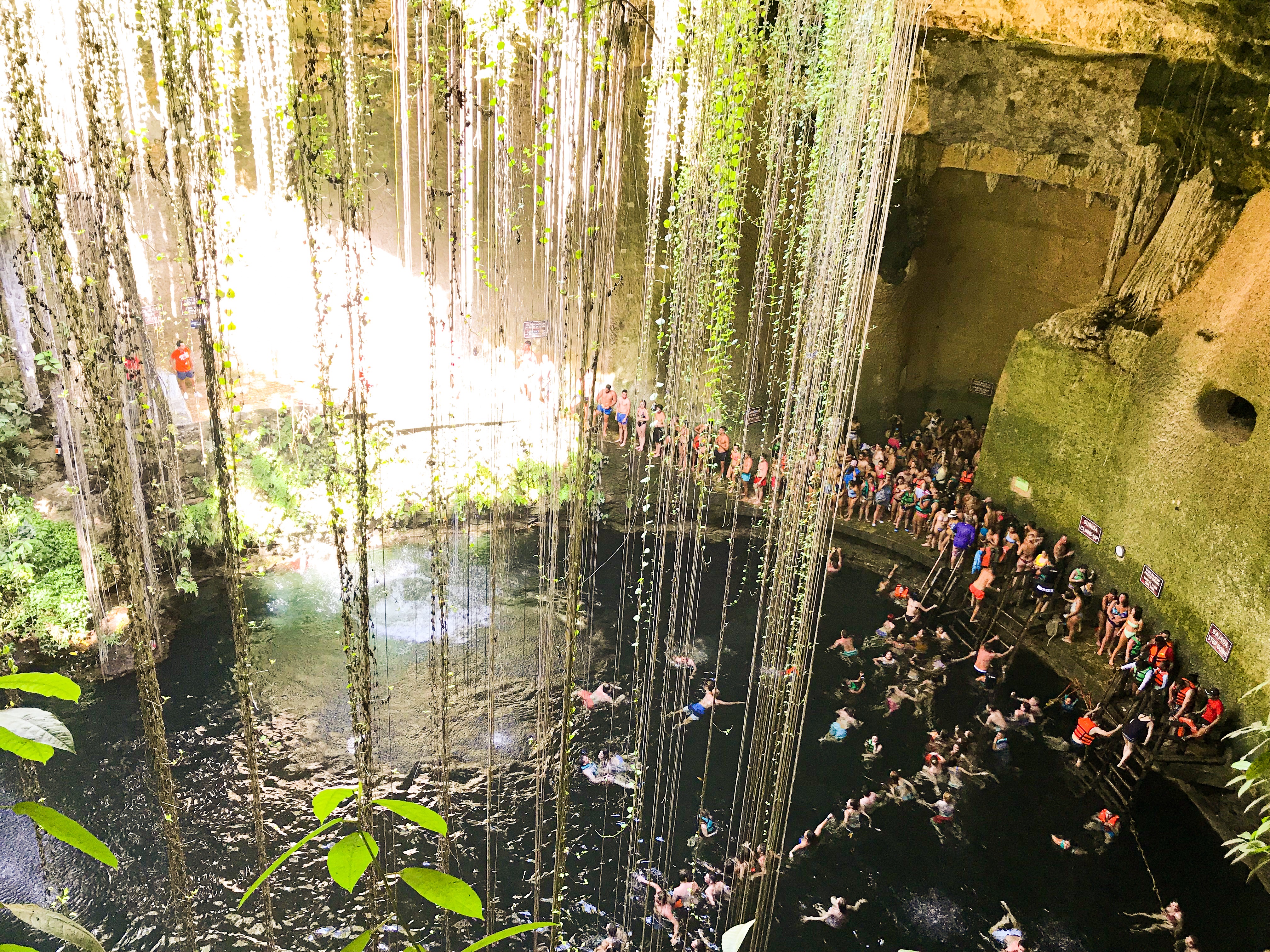 Claro que a comodidade de pegar uma excursão, como fizemos, tem pontos positivos. Mas, se você estiver de carro por lá, talvez seja melhor fazer sozinho mesmo e aproveitar pra chegar cedo, pegando a melhor hora do sol e fugindo do horário de pico de turistas no local. Outra dica é ir na baixa temporada (e olha que nossa experiência foi nessa época), porque não consigo imaginar mesmo o caos que deve ser conhecer o Cenote Ik Kil na alta temporada.