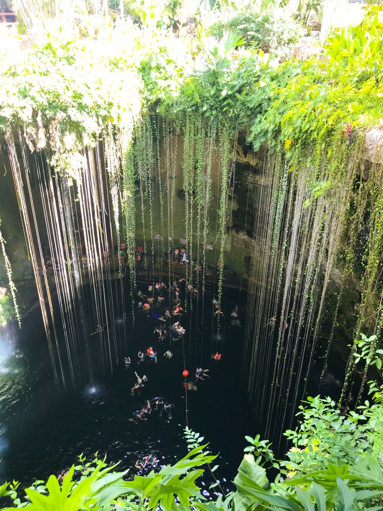 Cenotes são cavidades naturais onde podem se formar grandes piscinas naturais com águas vindas de rios subterrâneos. As águas costumam ser bem límpidas, já que os rios são formados por águas da chuva levemente filtrados pela terra. Além da paisagem impressionante de um buraco na terra revelando uma “piscina” de águas limpas, a vegetação no entorno torna a paisagem ainda mais cativante. Na cultura maia eram utilizados como fonte de água para as cidades, tanto que a principal da região de Yucatán (Chichén Itzá) está localizada próxima a alguns cenotes, e também considerados sagrados. A ponto de alguns rituais de sacrifício humanos serem realizados nos cenotes. É preciso entender que para os Maias, os cenotes eram a maneira mais acessível do espírito passar para o outro plano antes de retornar a Terra em uma nova vida.