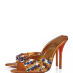 Com tons intensos como rosa, amarelo e laranja, além de estampas multicoloridas, a Christian Louboutin celebra a chegada da primavera com saltos coloridos. Os modelos unem sofisticação e ousadia, sempre acompanhados da icônica sola vermelha.