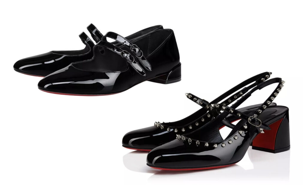 Já a sapatilha Sweet Jane, também inspirada no mesmo modelo, aposta em duas tiras elásticas com fivelas discretas e acabamento que preserva o brilho e a durabilidade da icônica sola vermelha.