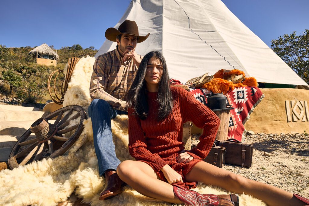 As peças trazem estampas geométricas inspiradas na tapeçaria da tribo Navajo combinadas com tecidos naturais e texturas que evocam o deserto. Cores terrosas, como marrom, ocre, caramelo e vermelho queimado, junto com nuances de azul, remetem às vastas paisagens desérticas, enquanto modelagens fluidas e cortes utilitários equilibram elegância e funcionalidade.