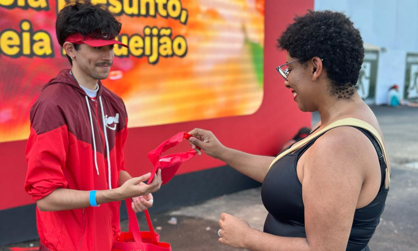 Ao lado a Colgate também aposta na imagem, dessa vez com foto impressas na hora e premiação com uma pochete brilhosa. A Hellman’s já preferiu convidar os participantes a jogar uma espécie de videogame e também presenteia os participantes com pochete.