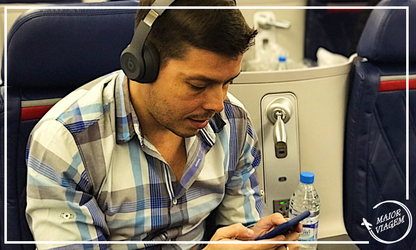O primeiro deles é um bom headphone. Seja para escutar uma música, ver seu filme ou série, jogar com o som do joguinho ou escutar um áudiolivro ele será essencial. Mas uma dica importante é escolher bem o modelo. Um modelo wireless, sem fio, é bem mais confortável para você se mexer e não ficar com fio enrolado quando está dentro do avião. Nesse caso porém vale lembrar que ele precisa de carga, por isso escolha um modelo que a carga efetivamente dure bastante. Outro detalhe importante é lembrar que passará um bom tempo com o headphone, então um modelo confortável será essencial. Ainda, além do movimento dentro da cabine, o barulho do próprio avião pode te atrapalhar e até te tirar atenção do que você está fazendo. Na hora de escolher pense nisso e procure um que cubra toda a orelha, que já ajuda. Eu estou sempre viajando com o meu Studio3 Wireless da Beats by Dr. Dre. Ele resolve todos os pontos supracitados com destaque para o recurso de cancelamento de ruído por meio da tecnologia Pure ANC, que te isola completamente, e com a bateria que tem duração de 22 a 44 horas sem recarga.