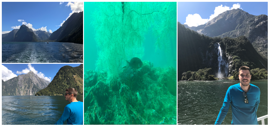 Importante ressaltar que a empresa oferece opções associadas ao transporte até o cruzeiro em Milford Sound em ônibus ou por via aérea, de helicóptero ou avião. Como optamos em ir de carro próprio, o que julgo ter sido uma decisão acertada já que pudemos dormir na região e fazer o caminho até o local vendo uma das estradas mais bonitas que já passei com calma, optamos apenas pelo cruzeiro no local associado ao observatório subaquático. Ficamos tentados em fazer também o caiaque, mas estava frio e ficamos com receio.
