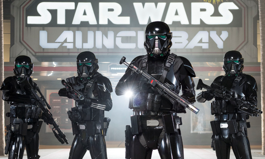 No show diurno “Star Wars: A Galaxy Far, Far Away”, os visitantes poderão ver em primeira mão o Advance Weapons Research (AWR) Troopers do “Rogue One”., que usam a sua armadura Stormtrooper especial, com um sinistro e escuro brilho. Já o espetáculo noturno “Star Wars: A Galactic Spectacular” voltará a ser apresentado no Disney’s Hollywood Studios a partir do dia 16 de dezembro. O espaço multissensorial que homenageia a franquia – Star Wars Launch Bay -está remodelado e vai receber adereços reais do “Rogue One”, que serão exibidos juntos aos acessórios dos outros filmes. O making-of do novo filme também foi adicionado ao já existente “Meet the Makers”.