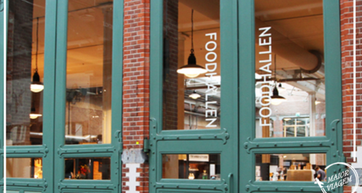 Um mercado com diversas opções de refeições em Amsterdam