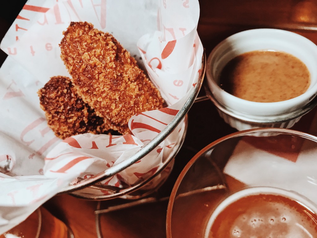 Começamos o fim de tarde provando o delicioso arancini de açafrão com chutney de tomate, harmozinado com espumante. Uma das receitas mais surpreendentes e que é a cara do fim de tarde para comer com os amigos. Depois fomos para o levíssimo tartare de palmito com farofa cítrica e massa phyllo crocante, que experimentamos com um gelado com vinho branco. O croquete de pernil ao molho de mostarda preta e mel leva laranja na massa como a grande surpresa ao paladar e faz dupla perfeita para uma cerveja gelada. Mas o mais saboroso de todos foi mesmo o éclair recheado de espinafre e gruyère ao molho de gorgonzola, boa pedida junto com uma taça de vinho rosé, pela leveza da massa e a surpresa no recheio dando um toque especial para o agradável fim de tarde que tivemos na unidade de Ipanema.