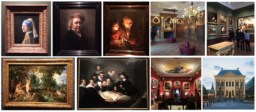 Uma das mais famosas telas holandesas, “Moça com Brinco de Peróla” de Johannes Vermeer, está no acervo local. Outros destaques são “Vista de Delft”, do mesmo artista, “O Touro” de Paulus Potter e “O Jardim do Éden de Jan Brueghel I e Peter Paul Rubens. Duas obras que chamaram muito a minha atenção foram “Mulher idosa e um menino”- Peter Paul Rubens – pela luminosidade do quadro e o detalhismo de “Aula de anatomia do Dr. Nicolaes Tulp” – Rembrant. Esse último artista tem ainda outras pinturas no local, incluindo um auto-retrato.