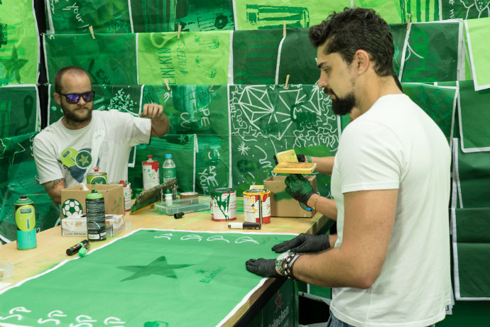 No próximo fim de semana São Paulo banha o maior mural de arte colaborativa do país. Desde 17 de fevereiro o Heineken Block convidou o coletivo de arte SHN para produzir junto ao público uma série de lambes-lambes que serão colocados na parede lateral de um edifício no centro de SP, perto da Estação da Luz.