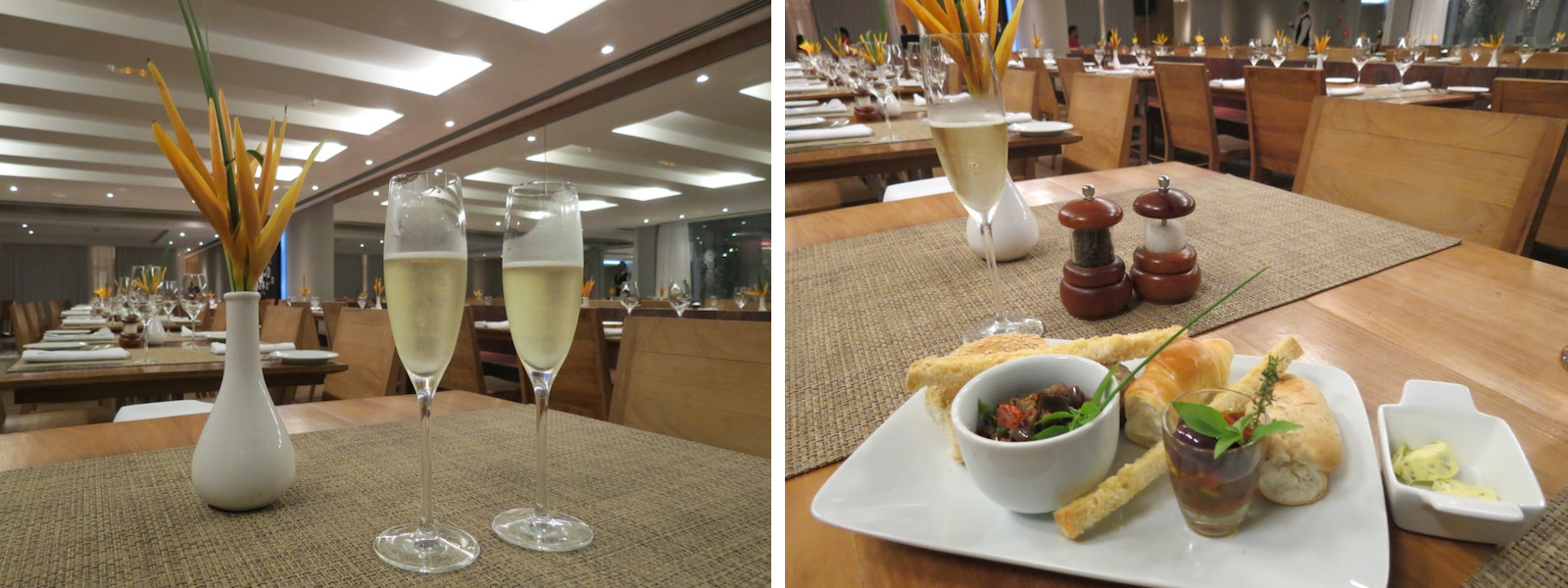 A convite do restaurante e do hotel, pudemos experimentar um menu degustação preparado para nós exclusivamente pelo chef, de forma que pudéssemos conhecer alguns pratos que constam no cardápio. Ao chegar, fomos muito bem recebidos pela equipe do restaurante, em especial o maître Daniel super gentil e atencioso ao servir os pratos, explicando cada um deles.