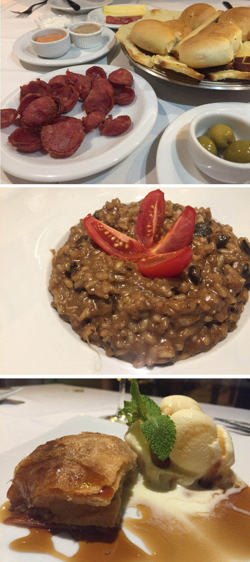 No jantar em que estivemos presentes, foi servido o tradicionalíssimo e saboroso Couvert La Mole harmonizado com um espumante Brut da Marquis de La Tour que prepara as papilas gustativas para receber os itens do couvert. De prato principal, além do arroz de cordeiro, o risoto de funghi que foi o que nós provamos. Por ser um prato com sabor mais encorpado, harmonizou perfeitamente com o Cabernet Sauvignon da Travessia. Finalizamos o jantar com uma sobremesa que está no cardápio de verão do restaurante, o folhado de maçã com sorvete de creme e calda de caramelo, que foi servida junto ao frisante Moscato D’Asti, da Cascinetta Vietti. Além de experimentar pratos e vinhos especiais, o jantar ficou completo com as histórias contadas pelo Valmir em suas andanças pelo mundo à procura de bons rótulos de vinhos e espumantes.