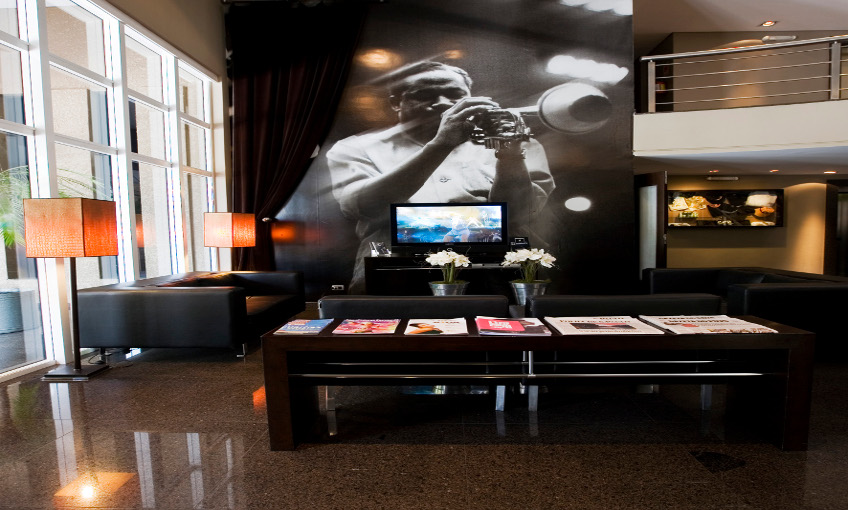 Alguns bons hotéis mundo afora dedicam algum espaço ao estilo musical, mas no Brasil, mais especificamente em Curitiba, o Slaviero Conceptual Full Jazz propõe um mergulho no universo do jazz através de sua decoração, gastronomia e serviços. Fotos de lendas do jazz nos quartos e corredores é só o começo dessa “viagem” ao mundo jazzístico, que culmina com um espaço de música ao vivo, com apresentações de expressivas bandas, ancoradas em boa gastronomia e uma ótima carta de drinks.