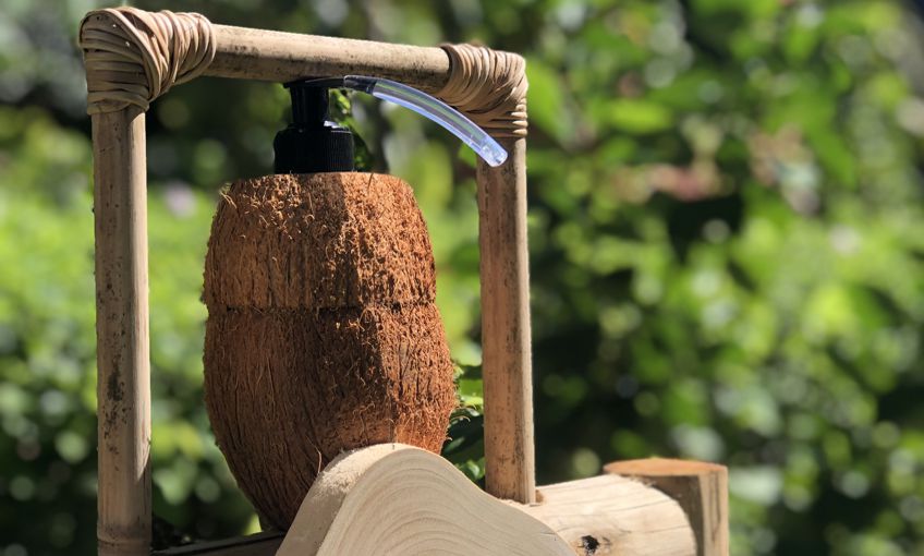 Com projeto de conexão com a natureza, o Hotel Kilombo Villas criou um dispenser ecológico de álcool em gel que ainda se integra ao jardim da propriedade. A ideia foi adaptar essa que é uma das medidas de segurança em resposta a pandemia da Covid-19 para ser uma solução inteligente e na mesma linha do projeto do hotel de respeitar a natureza local.