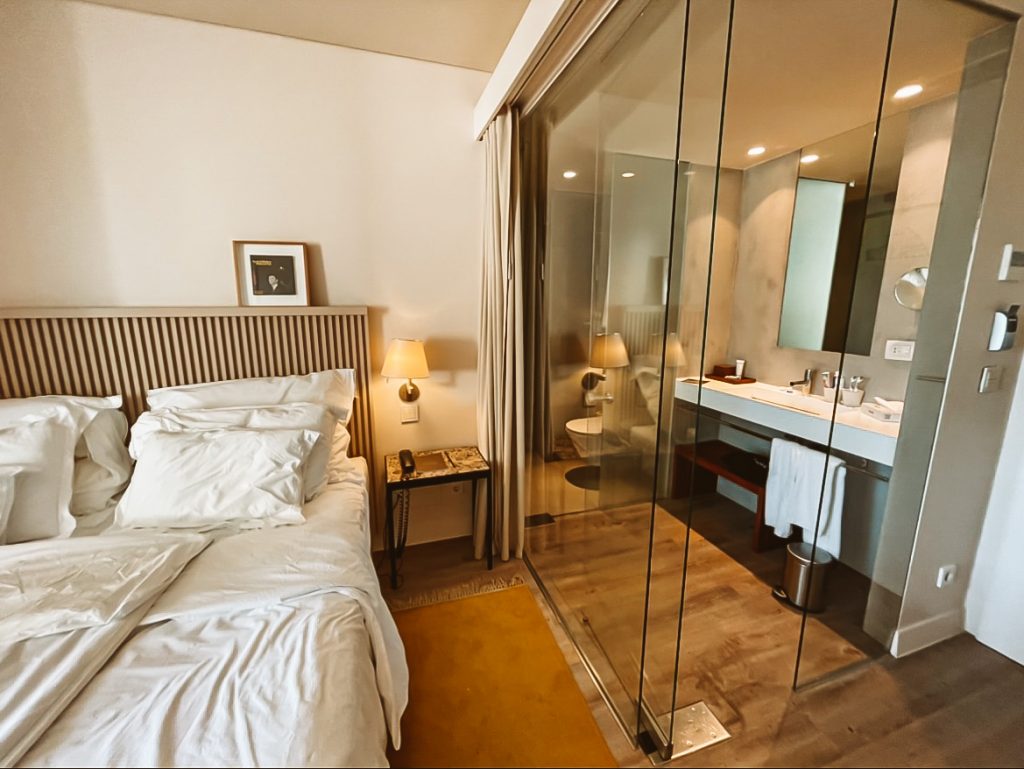 Mas isso não diminui o aconchego de se hospedar no Memmo Alfama, já que os móveis confortáveis abraçam o visitante após um dia andando pelas ladeiras da região. Para dar maior amplitude e um toque de modernidade, o banheiro aposta em parede de vidro.