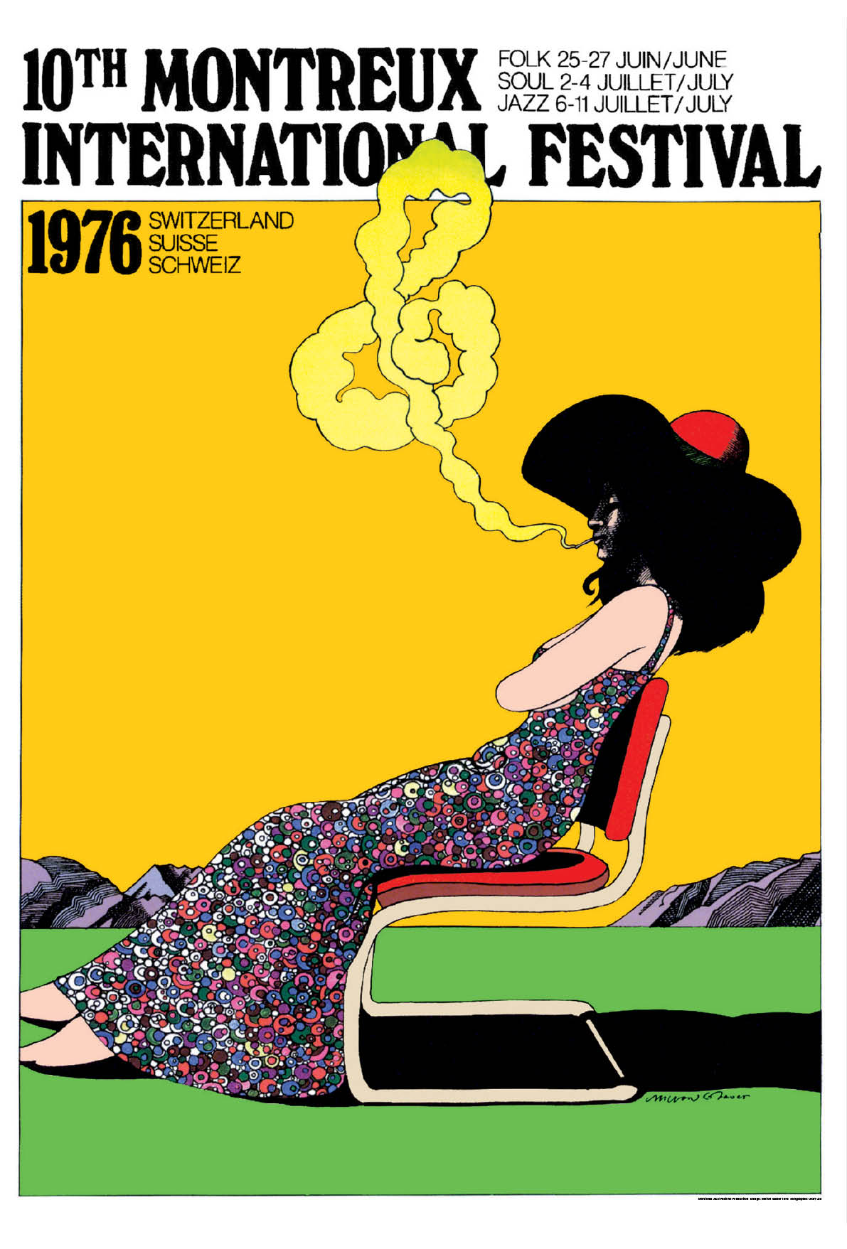 Em 1976, Milton Glaser, que fez história ao criar o logotipo de “I Love NY”, deu sua imagem do festival: uma mulher usando um chapéu estilo Janis Joplin, um vestido floral e fumando um baseado cuja fumaça se enrola em uma clave de sol.