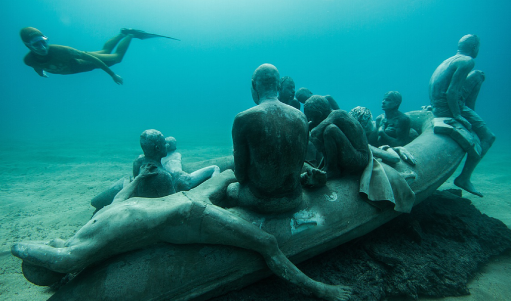 A nova galeria repete o ambiente das demais, com esculturas realistas que aos poucos se fundem ao ambiente marinho. Um dos destaques será “The raft of Lampedusa”, que representa os refugiados que tentam chegar a Europa.