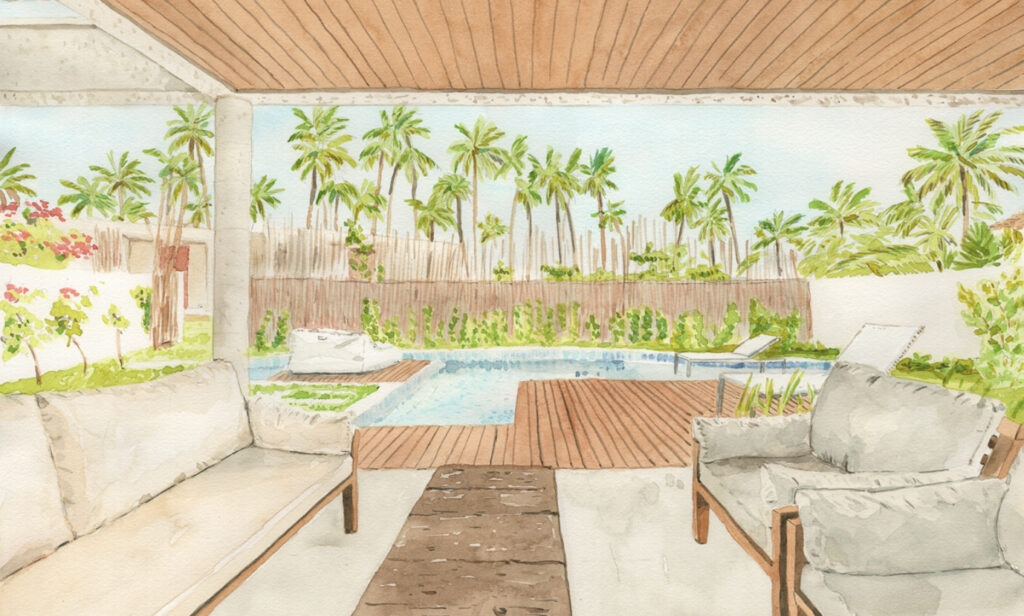 O projeto de arquitetura do escritório Rodrigo Fagá traz linhas contemporâneas e privilegia o uso de materiais naturais como madeira, pedra, concreto e piaçava. Grandes áreas envidraçadas estabelecem uma relação direta com a natureza. Peças artesanais da Ilha do Ferro, mobiliário clássico de designers nacionais e peças autorais desenvolvidas pelo escritório de arquitetura compõem o projeto de interiores.