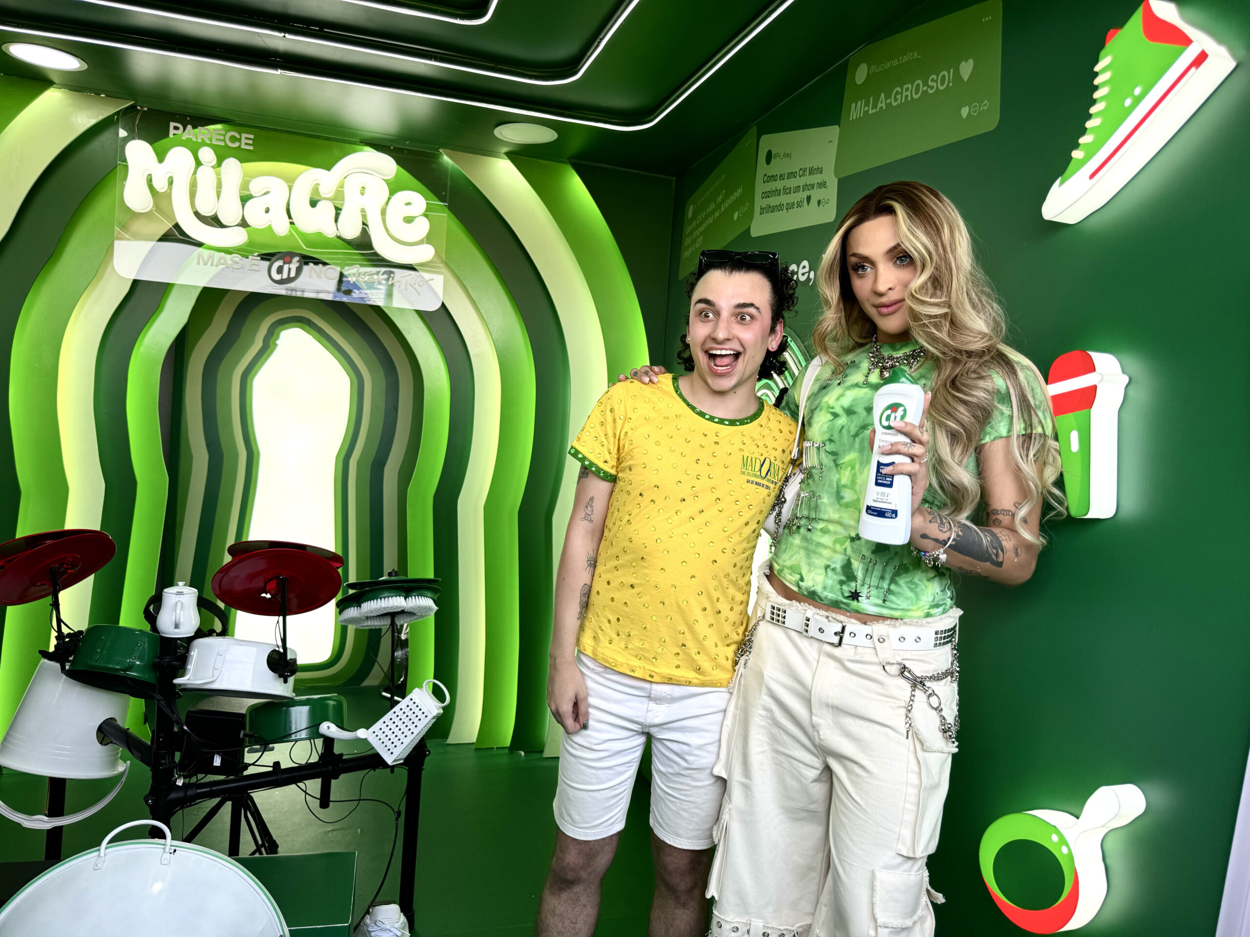 Por enquanto a cantora ainda não subiu ao palco, mas participou de um meet & greet no estande de um dos patrocinadores. Pabllo esteve no espaço da Cif para tirar fotos com alguns fãs e aproveitou para limpar as sua conhecidas botas brancas com o produto.