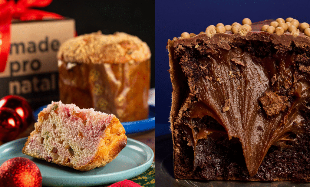A receita da Dianna Bakery é feito com massa artesanal e frutas cristalizadas com cereja amarena – R$ 96. O browniettone toffee escuro da Sin Patisserie entrega um toffee profundo, com aquela textura “puxa” e sabor rico, contrastando com uma massa leve que realça a caramelização – R$ 197.