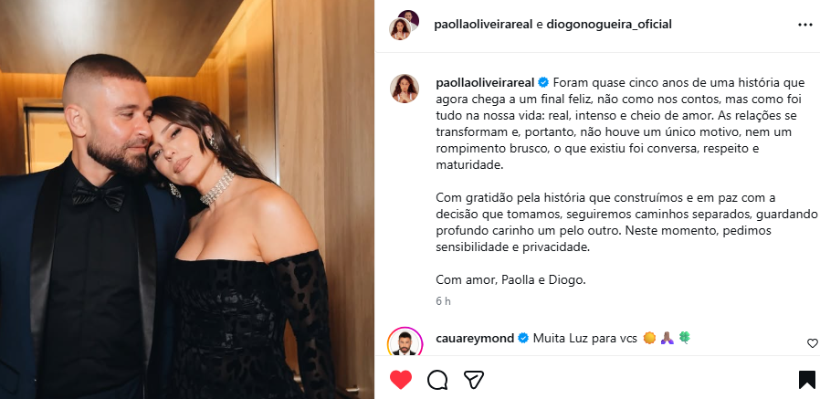 Casal anunciou a separação nas redes sociais Crédito: Reprodução/Instagram