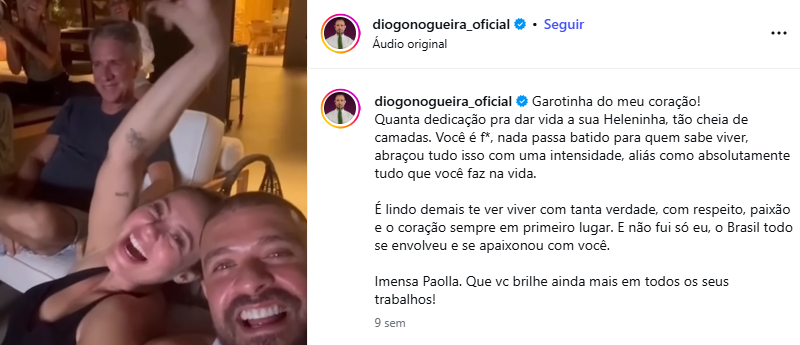 O casal também já não era mais visto juntos há um tempo em eventos públicos. Até mesmo na despedida de Paolla como Rainha de Bateria da Grande Rio não contou com a presença de Diogo.