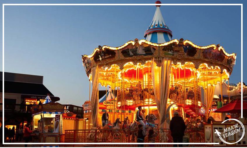 Mas o Pier 39 tem muito mais a oferece, até mesmo para quem vai apenas visitar o local sem querer gastar dinheiro por lá. Além dos leões marinhos, do píer é possível tirar fotos incríveis da Baia de San Francisco e de lugares icônicos como Alcatraz e a Golden Gate. Além disso, o próprio Pier 39 rende lindas fotos já que o contrates de madeira com o azul produzem fotos lindas, ainda mais com o famoso Carrossel do Pier 39 de fundo. Bem central, ele se destaca no meio das atrações e tem ao lado os locais onde artistas de rua e malabaristas se apresentam. Há também a escada musical que rende ótimas fotos e é uma atração a mais.
