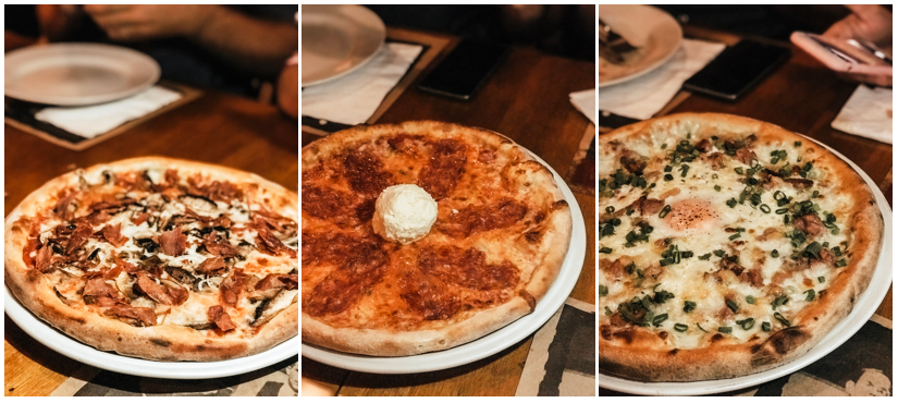 Entre os destaques da noite que passei na Domenica Pizzaria, certamente a Truffata – novidade da casa que leva molho de tomate, mozzarella de búfala, cogumelos portobello e paris, cebola, crok de parma e trufas brancas (o aroma já conquista logo quando chega); a Diavola Bionda – com molho de tomate, mozzarella de búfala e spianatta picante (na medida certa da picância) e stracciatella); e a Carbonara – mozzarella de búfala, stracciatella, bacon, linguiça de lombo suíno, ovo caipira, grana padano, pimenta do reino e cebolinha foram os destaques.