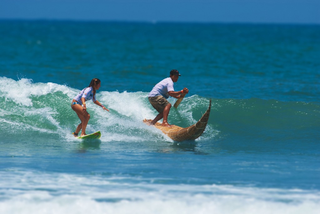 Em busca de alimentos no mar, os pescadores foram os primeiros homens a experimentar o prazer de sulcar as ondas. Até os dias atuais, esses homens continuam utilizando os “caballitos de totora” como pranchas para deslizar sobre as ondas, em especial em Trujillo, no balneário de Huanchaco. Contudo, a prática do surfe tem uma grande legião de seguidores no Peru, rendendo vários títulos mundiais.