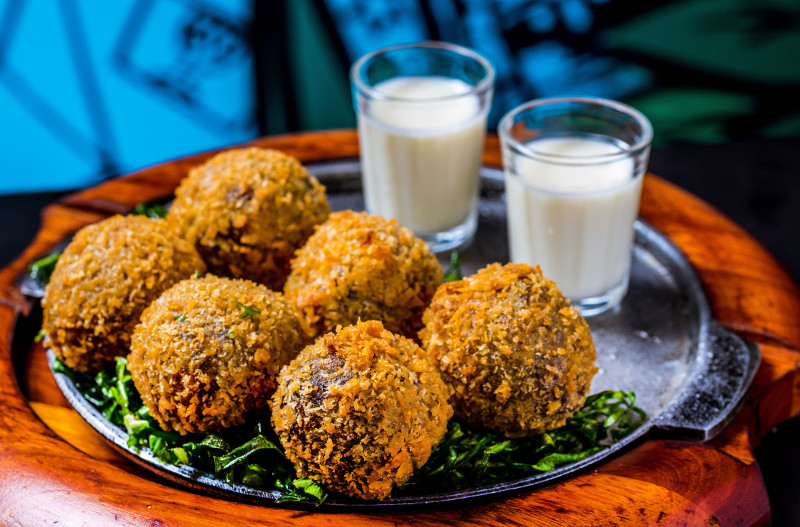 Quem não conseguiu ingresso para o Rock in Rio ou prefere curtir o evento longe da muvuca não precisa se preocupar. O Mundeco, no Leme, e o Barthodomeu, em Ipanema, vão transmitir os shows do Festival. Para acompanhar a apresentação de diversos nomes nacionais e internacionais, a dica é dividir com os amigos o Mix Barthodomeu, uma generosa combinação de carne seca acebolada, calabresa flambada acebolada, costelinha crocante, aipim frito, farofa da casa e manteiga de garrafa e o Mojitão, uma jarra de 1,5l do tradicional drink mexicano. Já no Mundeco, a pedida é o Carioca (bolinhos de feijoada recheados com linguicinha, acompanhados geleia de laranja e couve crocante – foto) e o Gin do Thiago com gin bombay infusionado no cardamomo, suco de grapefruit e limão siciliano, xarope de gengibre, água tônica e alecrim. No Bartholomeu, a exibição se dará após a música ao vivo.