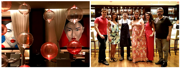 A partir das entradas a viagem por toda a Ásia se torna ainda mais presente, com os rolinhos vietnamitas recheados de porco, os camarões com nozes caramelizados ou o Lagostim ao vapor de Hong Kong, entre outros. Os dumplings camponeses também marcam presença no cardápio, assim como clássicos da culinária tailandesa, como o Pad Thai. A Wagyu, tradicional carne asiática não poderia ficar de fora. Até mesmo nas sobremesas o toque asiático está presente, como a cheesecake de tofu servida com caldas de frutas vermelhas e sorbet de framboesa e o Dim sum recheado com yuzu e chocolate branco com sorvete de gergelim. Há outras opções de doces, algumas bastante adaptadas ao gosto brasileiro, como a mousse de chocolate com pedaços de bolo de chocolate feitos com castanha do pará e sorvete de capim limão.