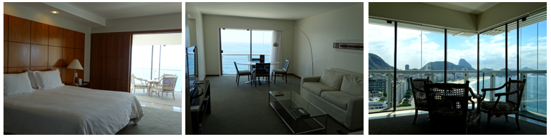 Há outros tipos de quartos, inclusive suítes executivas que tem tamanho invejável, com direito a sala de estar, cozinha, lavabo, banheiro, quarto de dormir e uma varanda envidraçada com a melhor vista que o hotel oferece. Esse tipo de quarto oferece uma estadia incrível, onde o grande destaque é mesmo a vista. Tanto que foi toda projetada para que de diferentes ambientes a vista fosse privilegiada. O Rio Othon Palace conta também com serviço de business lounge, com check-in e check-out exclusivo, e café da manhã no Skylab para algumas categorias.